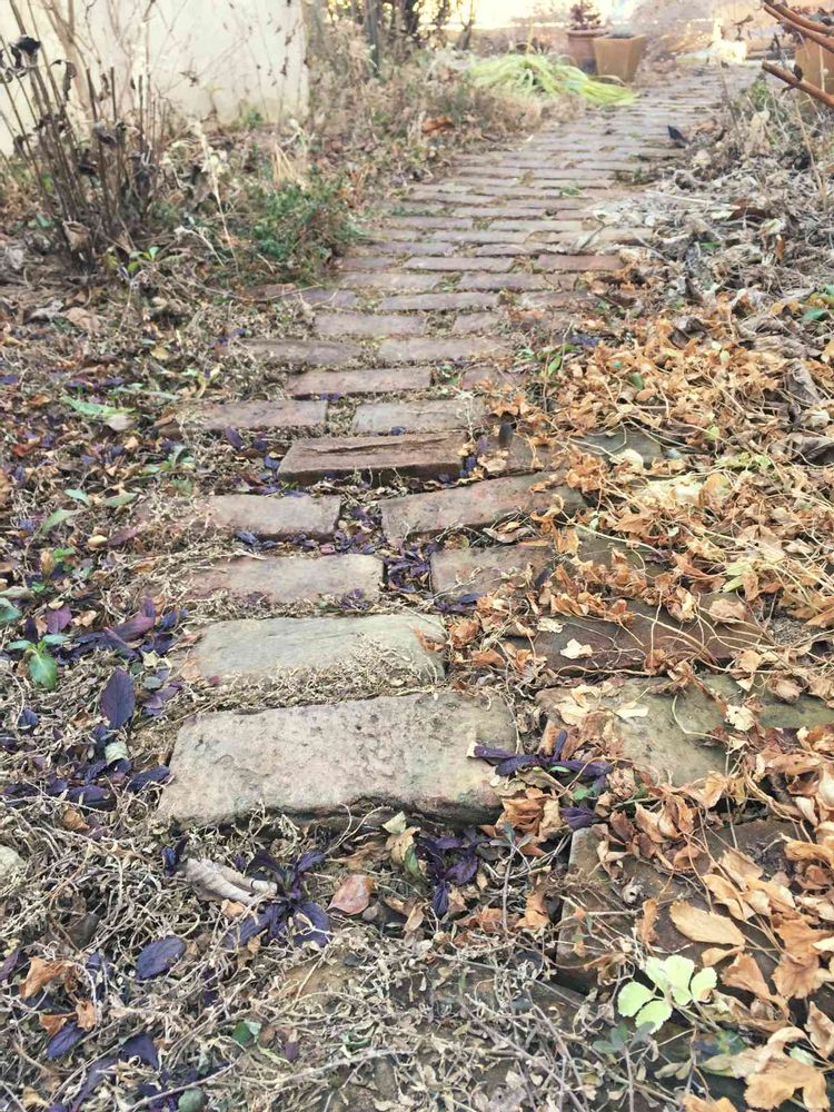 玄関からショートカットして駐車場に行くために作った道なんですけど、汚れたレンガがいい感じになってくれてます٩(๑❛ᴗ❛๑)۶