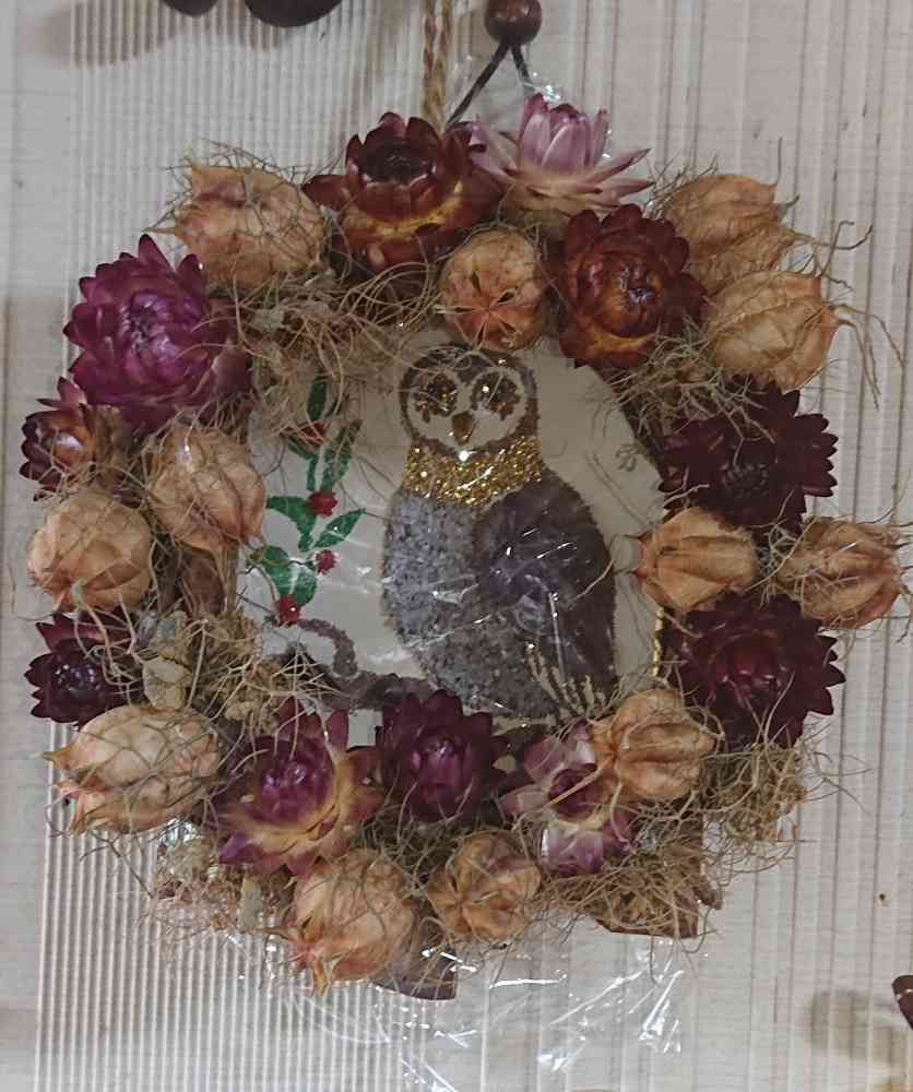 フクロウの🦉絵のお陰で、リースがとても豪華に見えてますね🤭