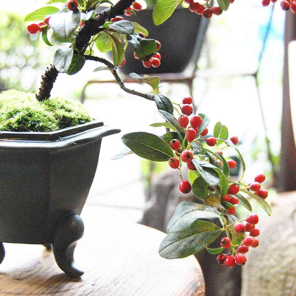 庭木で見かける樹種も、鉢合わせしだいでこんなに上品に。毎年簡単に実が楽しめるのも魅力です。