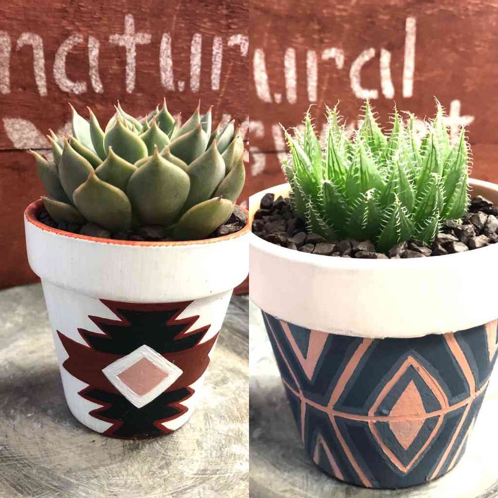 友人に素焼き鉢にペイントしてもらいました😃手先が器用なのがうらやましですね😵
