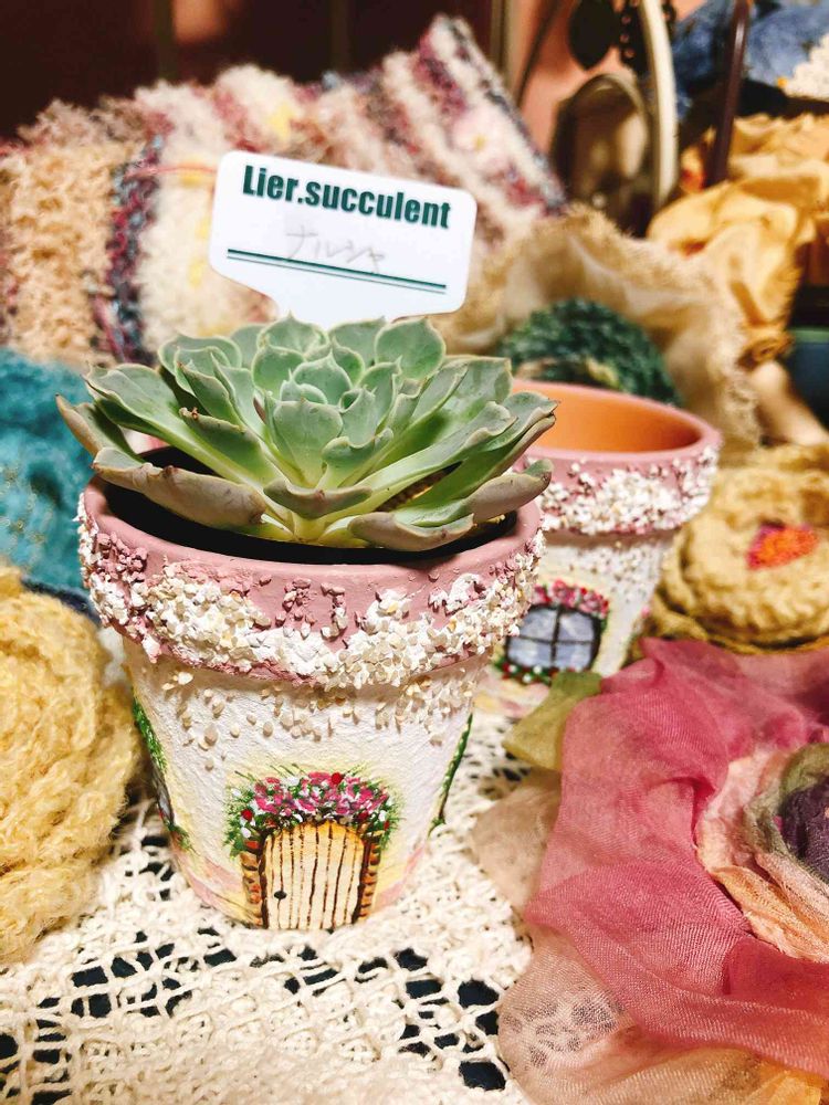 そうそう やっと筆🖌持つ気になったから リメ鉢の続きしてる こないだ多肉イベントでお迎えしたナルシャやっと寄せたよ😊