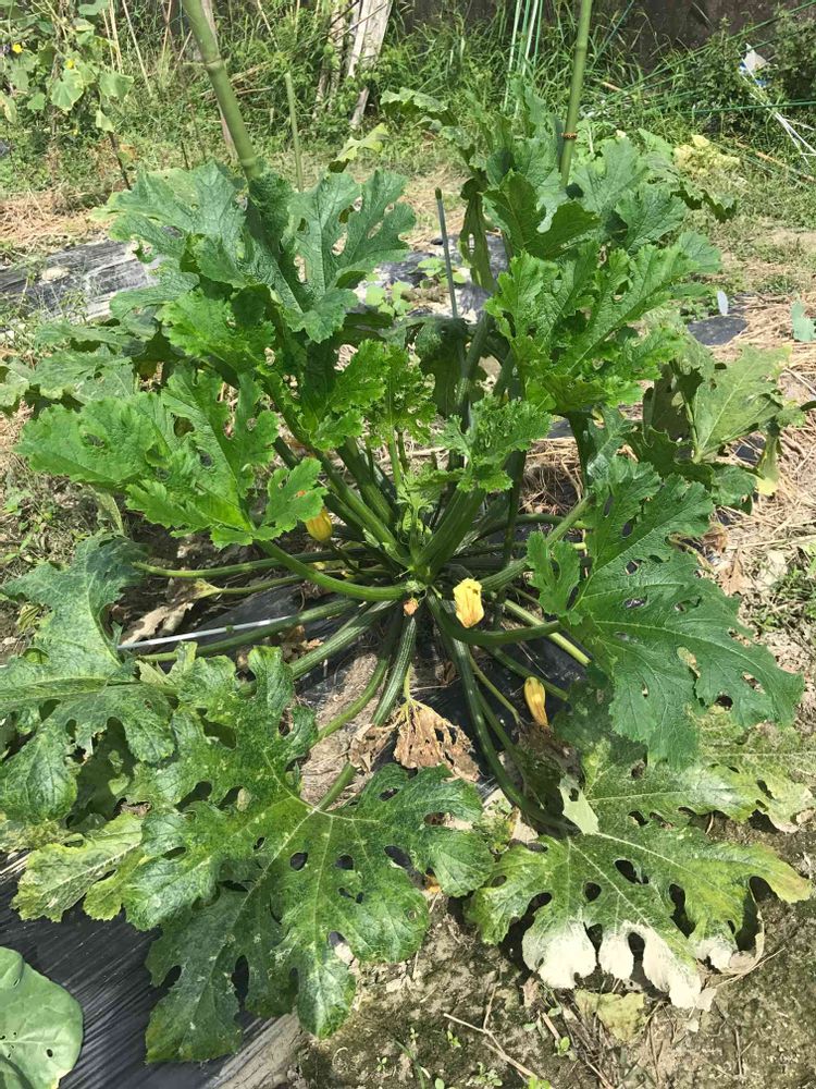 秋ズッキーニ、なかなか受粉しません。