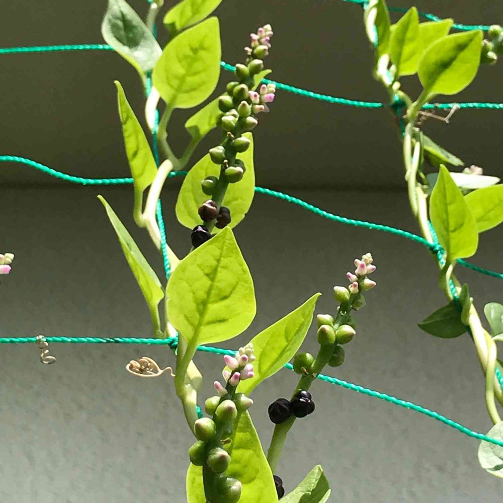 今夏のグリーンカーテン、ツルムラサキのお花と結実のお姿●🤔