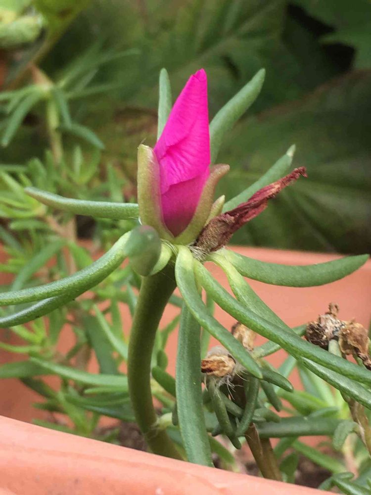 頂いた松葉ボタン 挿し芽にしたのが もうじきしたら 咲きそうになってきました。冬を越すには 霜が降りるとダメになるので 注意点も教えて頂きました。