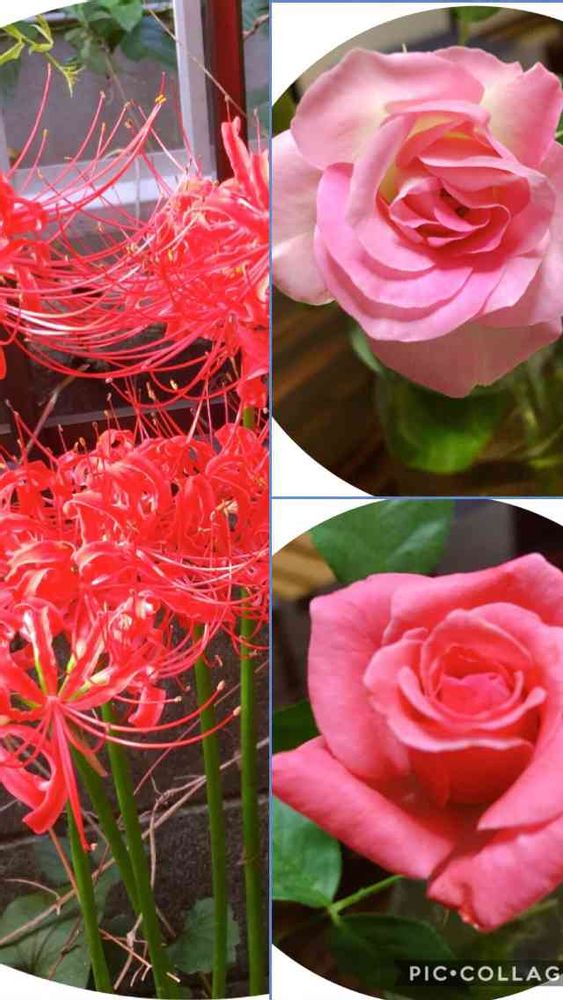 花が好きさんの小さな庭,ヒガンバナ,バラ ストロベリーアイスの投稿画像