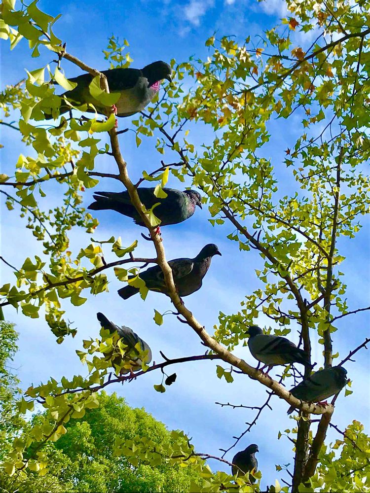 昨日天気良かったので鳩🕊がいっぱい木の上で井戸端会議😄してました(´▽`) '` '` '`