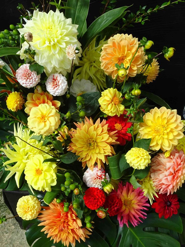 北海道芸術デザイン専門学校の学生さんが華やかにアレンジしてくれたダリアたちが出迎えてくれました。