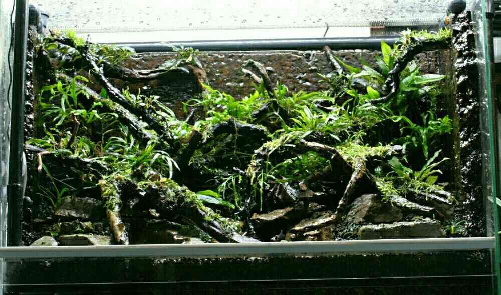 このケージはポンプを使って水を循環さていたのだけど、今は賃貸だから水を廻したくなく、ミズゴケに含ませた水分だけでなんとかまかなおうかと。。⛅