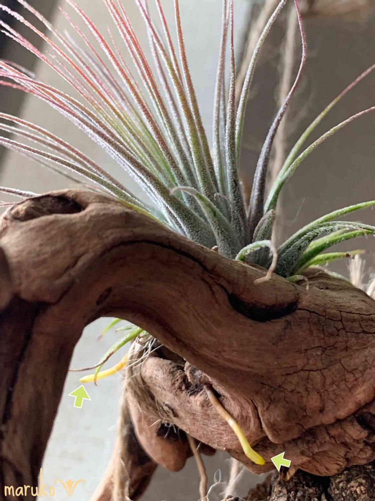 自然のチランジアは木などに根を這わせて生きている様です🍀このイオナンタは流木に麻紐で巻いてあるのですがしっかり根が活着したら麻紐を外せます☺️ それで本来の姿になれるのかな😊