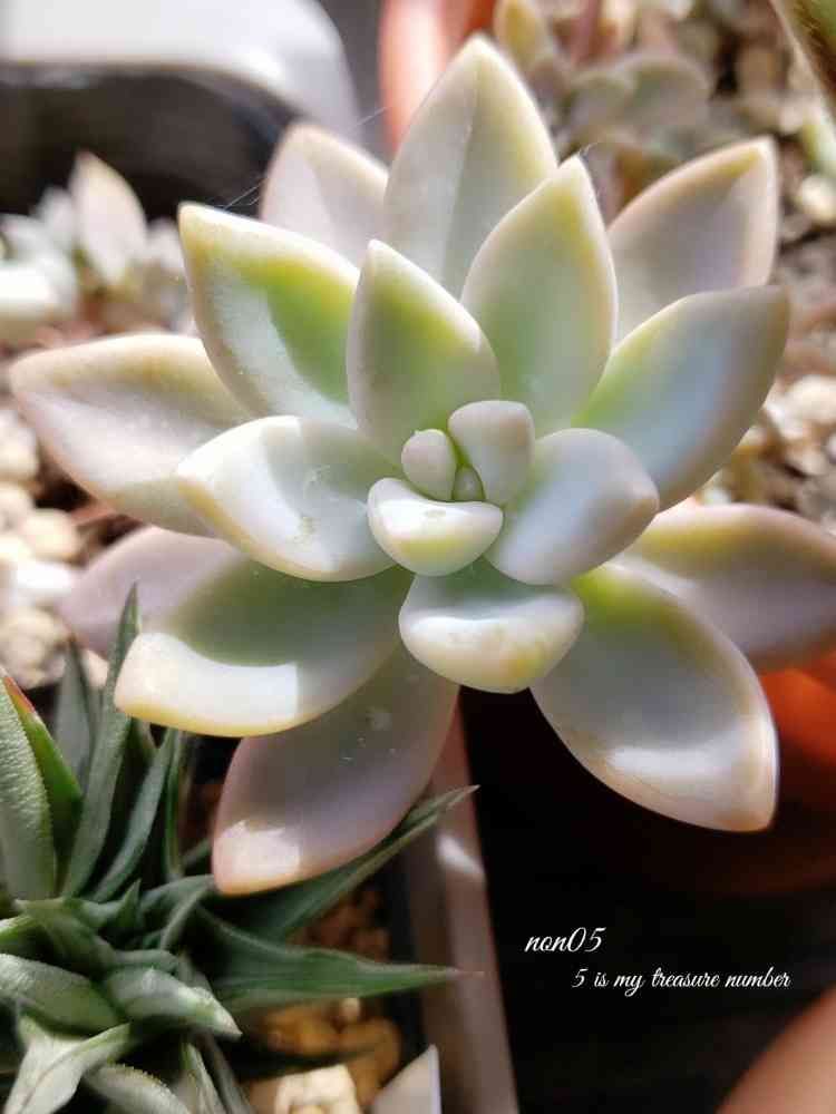 薄いピンクと黄緑色の葉っぱで薄っすらお粉をまとっています🤭