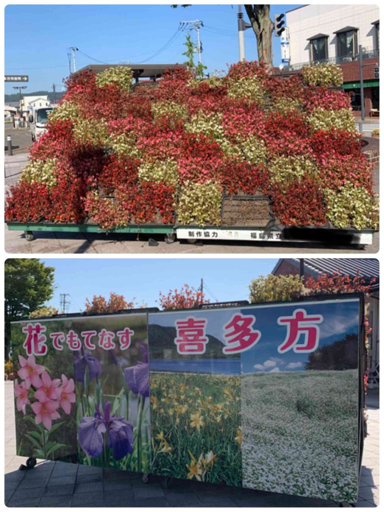 福島県喜多方駅に、地元の高校生が育てたお花が飾られていました😊