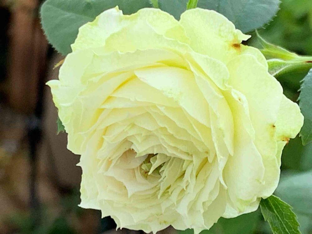 東側の環境のせいか、グリーン系のクリーム色で咲いています。