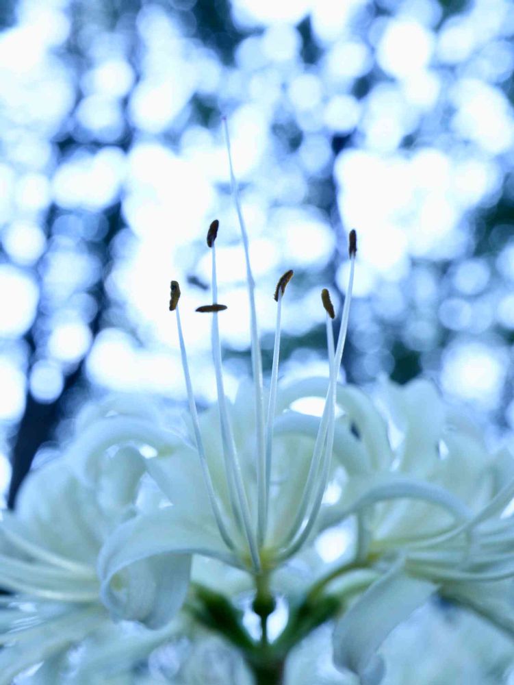 白色の彼岸花、backがキラキラしててきれい(⁎ᵒ̶̷ ૢᴗ̵̍ ૢᵒ̷̶⁎)✼❇❈