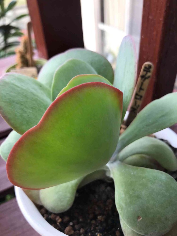 一度は根腐れしてしまったんですが上の部分を土に挿したらまた根が出てきて大きくなった子です。