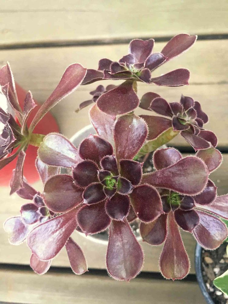 夏の間、室内に置いていたアオエニウム 。休眠期とはいえ、ポロポロ葉が枯れて落ちまくり、もうダメなのか〜💦と思ってたけど、秋になり戸外に出しっ放しにしてたら、中央が緑になってきてツヤツヤになった✨ これからどんどん成長してくれるといいな〜🌱