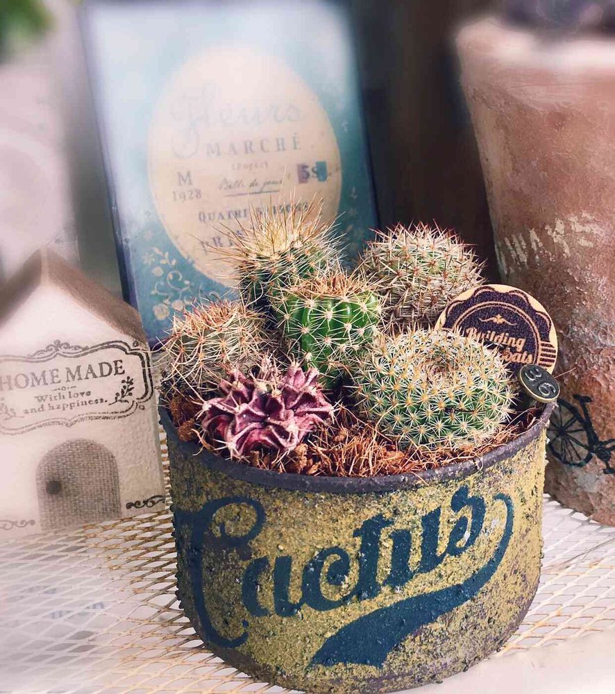 渋〜い✨リメ缶に(*^_^*)サボテン🌵の寄せ植え👍いいじゃーん❣️💓😄