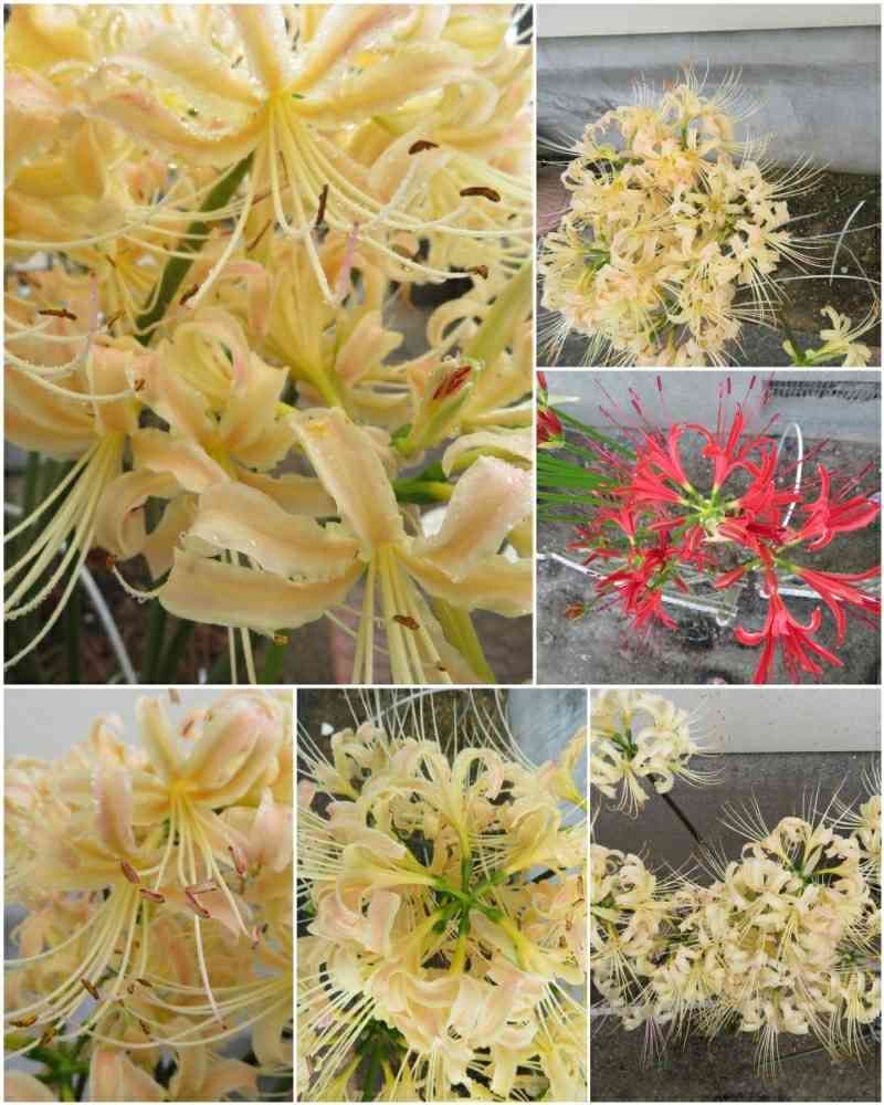 2ヶ所のリコリスの群れ、彼岸花の群れの中からコラージュにしました。