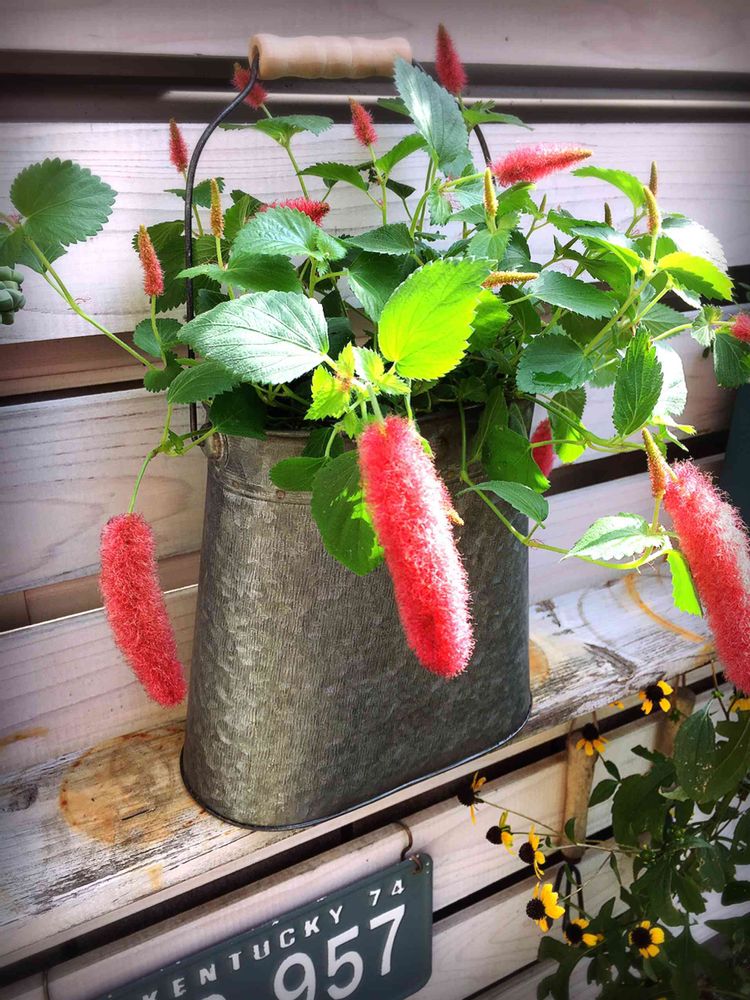 渋い容器に赤いキャットテールが、かっこいいですね。配色が好きですね。😊🎶🌹