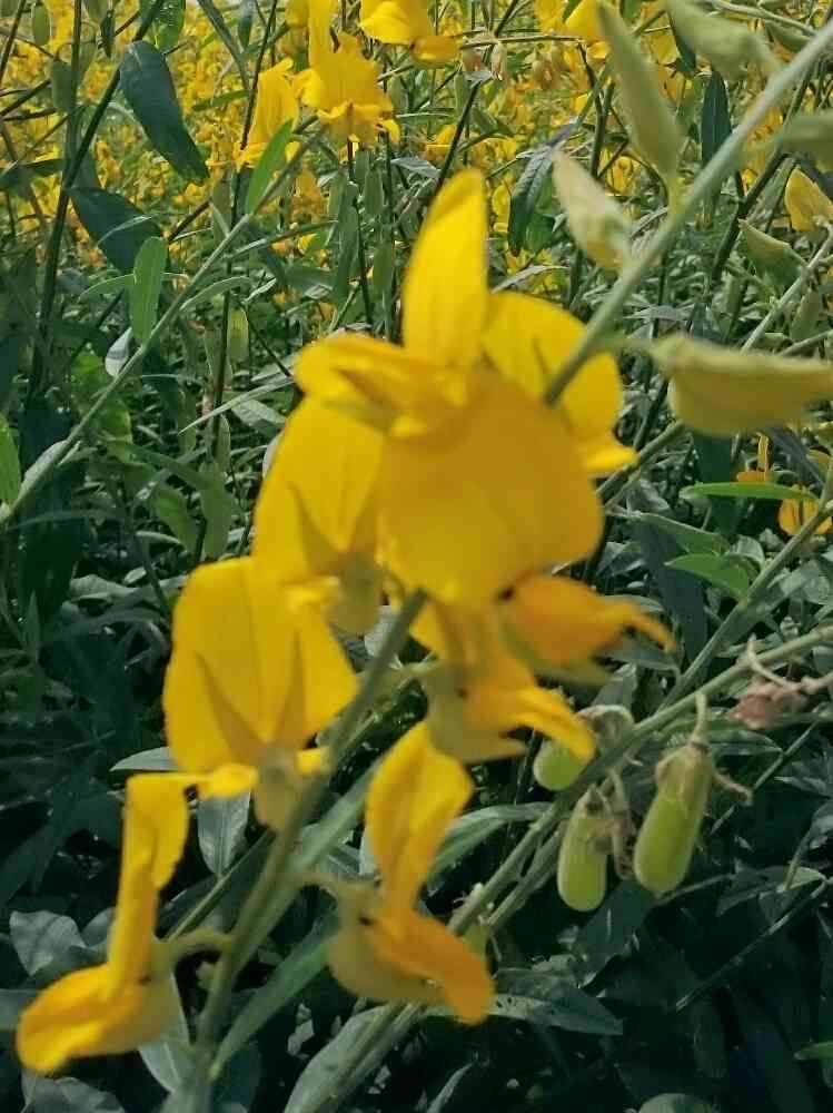 畑一面に背が高い黄色の花で豆が付いてました😊