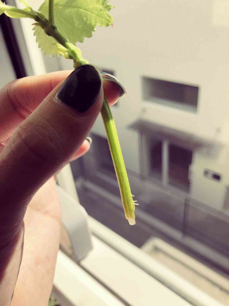 大葉の水差し、根が出てきた♡