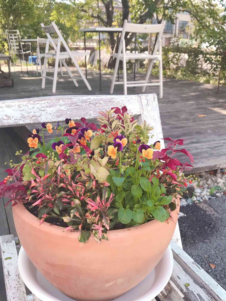 カフェの寄せ植え模様替え。苦手なハロウィンカラーを意識したつもり🎃けど、やっぱり苦手だなー。