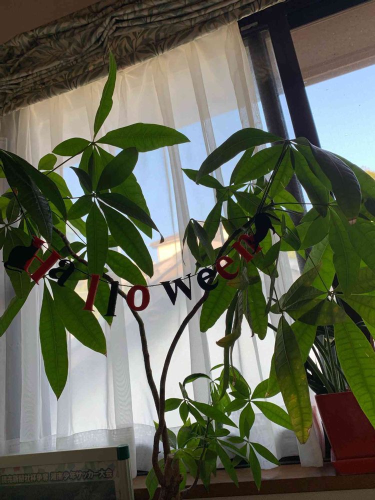 我が家で一番古いパキラのハイドロカルチャーにハロウィン🎃の飾り付けしました😊