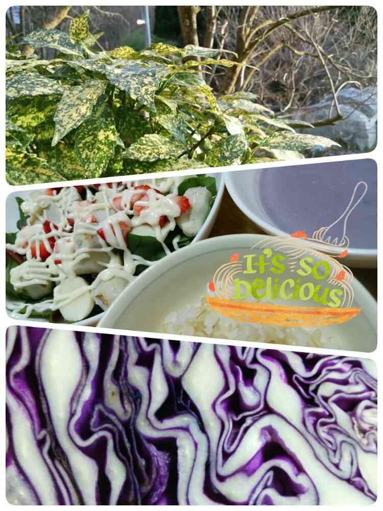 野菜も寒さで甘みまして美味い、ほうれん草は生で茹でた里芋イチゴとサラダに