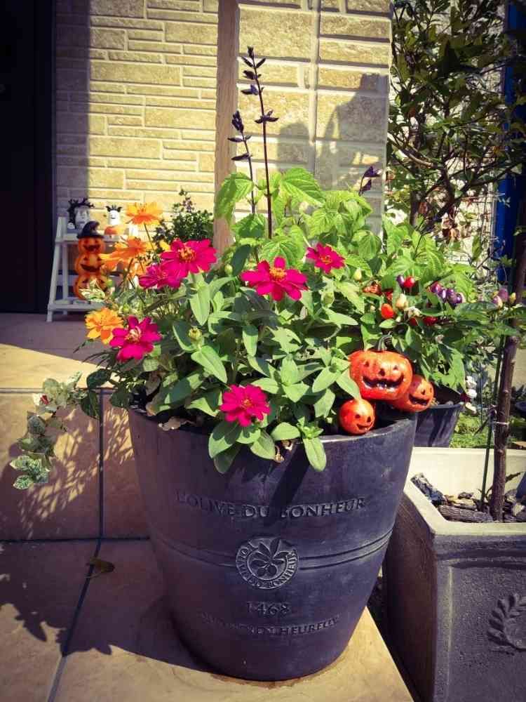 毎年ハロウィンの寄せ植えをたくさん作りますがこの組み合わせが鉄板過ぎてなかなか新しい組み合わせが思い浮かばない(笑)