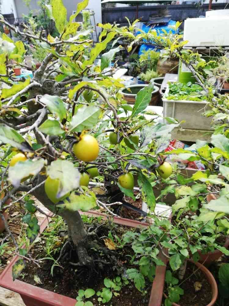 姫柿の盆栽 色づいてきた😊 熟すと 実はすぐ落ちる…