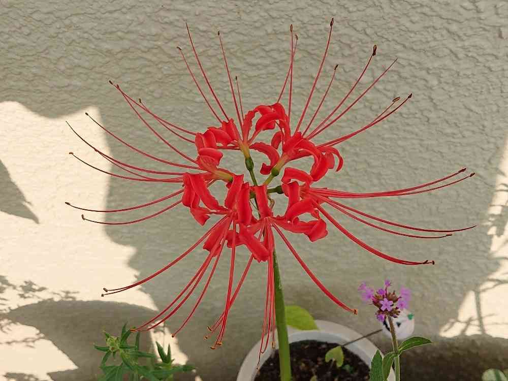白い壁が、彼岸花の赤を引き立ててるね〜🤗