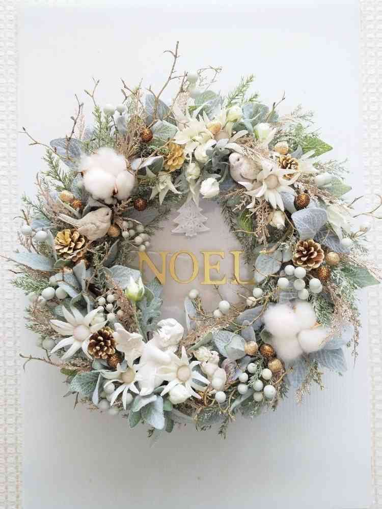 白い小鳥と天使、本当にクリスマスらしいリースですね。