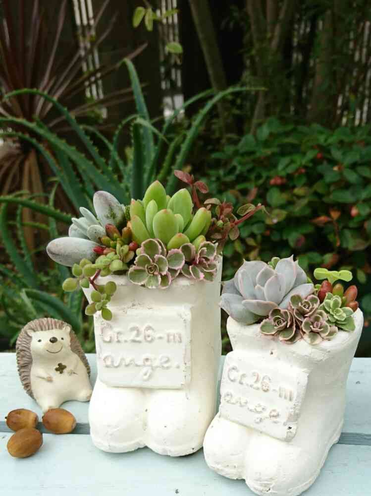 ブーツ大小二足の寄せ植えさんと、ハリネズミ君と、ドングリころころ➰➰