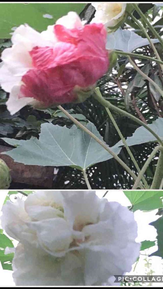 真っ白い酔芙蓉さんと半分ピンク色の酔芙蓉さんが〜〜不思議な感じがします🤣