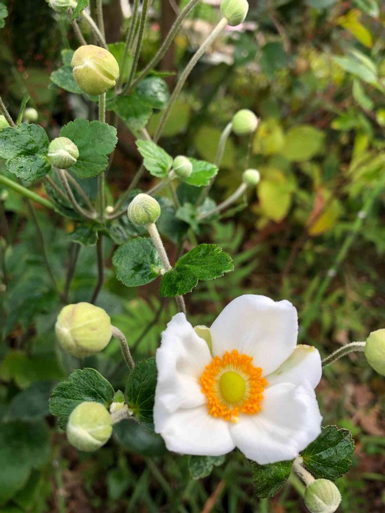 やっと私の庭も、秋のシュウメイギクが咲きました真っ白とくっきりした黄色。蕾もぷっくり膨らんで開こうと待っています❣️