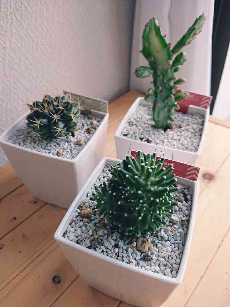 ダイソーから迎えたサボテントリオ。すくすく育て。