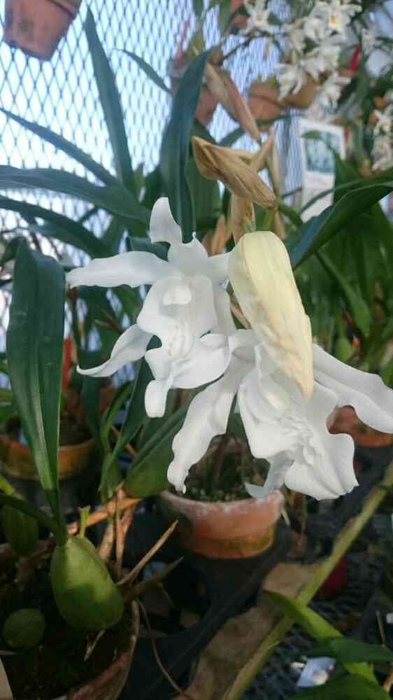 他のクリスタータに比べるとバルブの間が伸びますが、花は純白で良い香りがします。