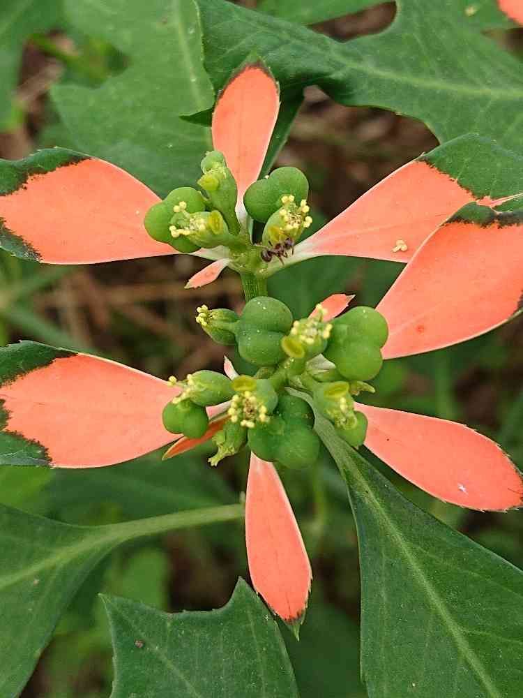この花、庭に突然芽が出て咲き始め・・・私も名前が気になってました。サマーポインセチア💕ですね