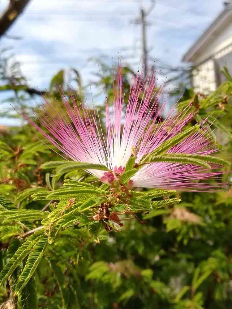 散歩途中に季節外れのネムの花に会いました‥可愛いかった‥