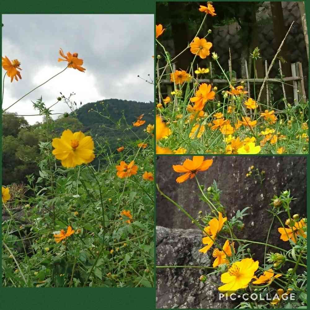 街の花壇と違って、野性味溢れるキバナコスモスの花壇。