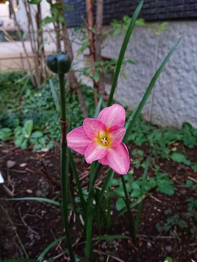 お天気のせいか、お花の形もいまひとつ・・ですね。手前は花後のゼフィランサス。日射しがきつくて、しんどそうだね。頑張れ‼️。