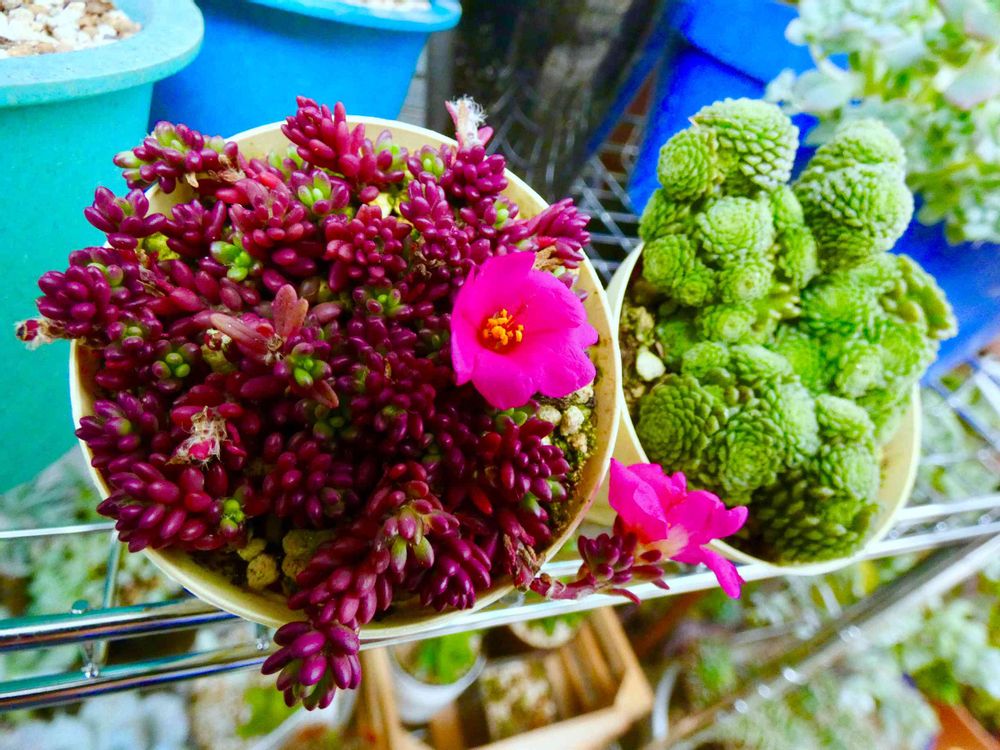 バルコニー/ベランダ,モナンテス ポリフィラ,ポーチュラカ ピンキーの投稿画像