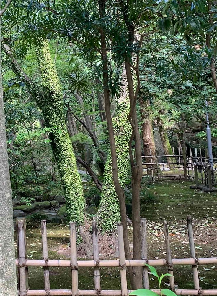 中央の二本の木にまとわりつくように小さな植物が〜?