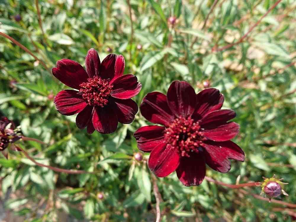 可愛い背丈の、チョコ色の、コスモスさん。昔は、無かった色ね。素敵だワン🐶🍁