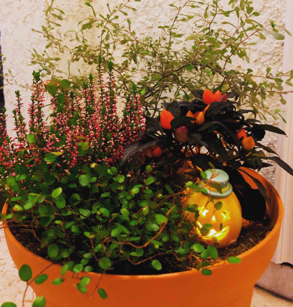 黒とオレンジのかわいいトウガラシがあったのでハロウィンイメージで寄せ植えしました🎃
