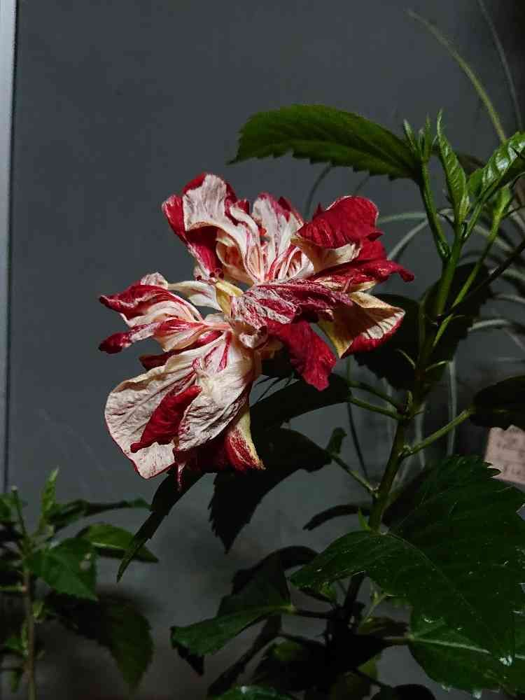 今晩は🙇真夜中の投稿です!すみません、ハイビスカスハワイアン・フラッグ咲きました!、早く仕事行かなきゃ😭💦💦。