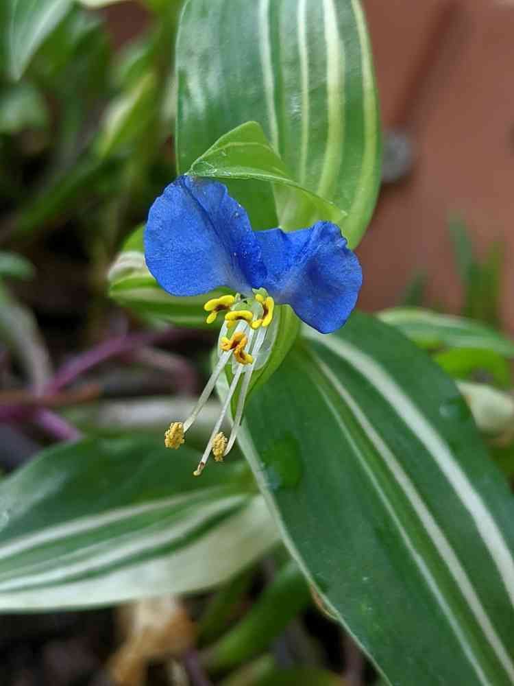 斑入りなんですね。つゆ草鮮やかな青がいいですね🙂。