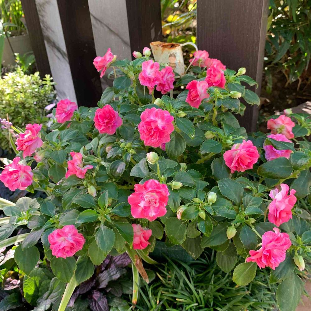 スマホで撮影,カリフォルニアローズ フィエスタ,八重咲きインパチェンス!の投稿画像