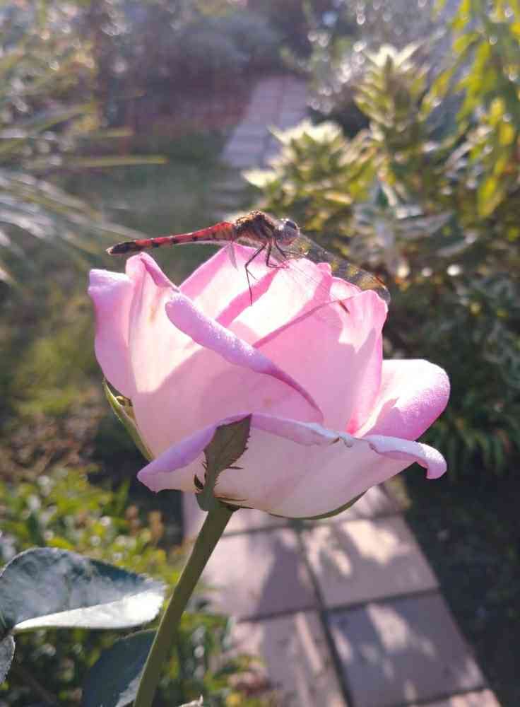 庭に出てたらトンボさんが止まっていたので慌ててスマホを持ってきて撮りました😅🤳🌹