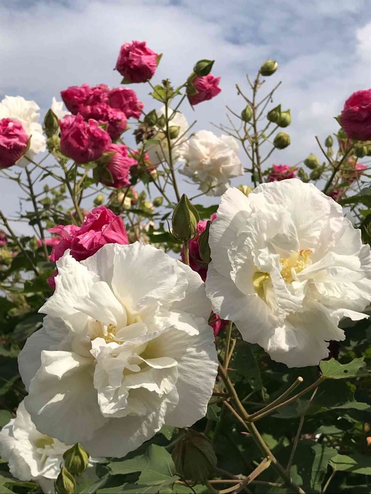 ホントですね〜1日3色の変化を見届けたくなりますね❣️picは昼前だったので白で、赤く見えるのは昨日咲いてたお花が萎んだ所ですね。