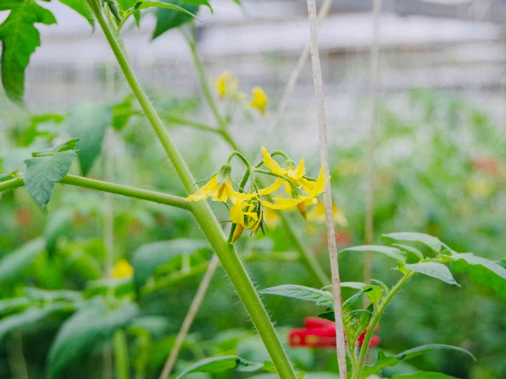 ハウス内のトマトの花🌼。こちらはまだ小さめですね!🍅🍅